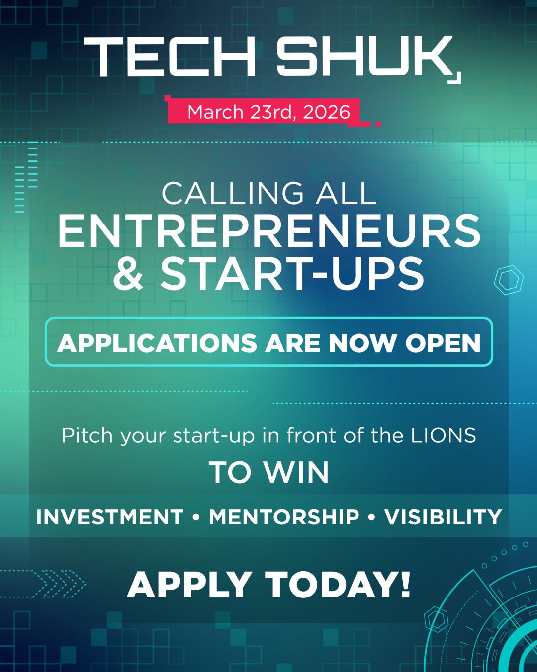 TECH SHUK COMPETITION - APPLICATIONS NOW OPEN!
